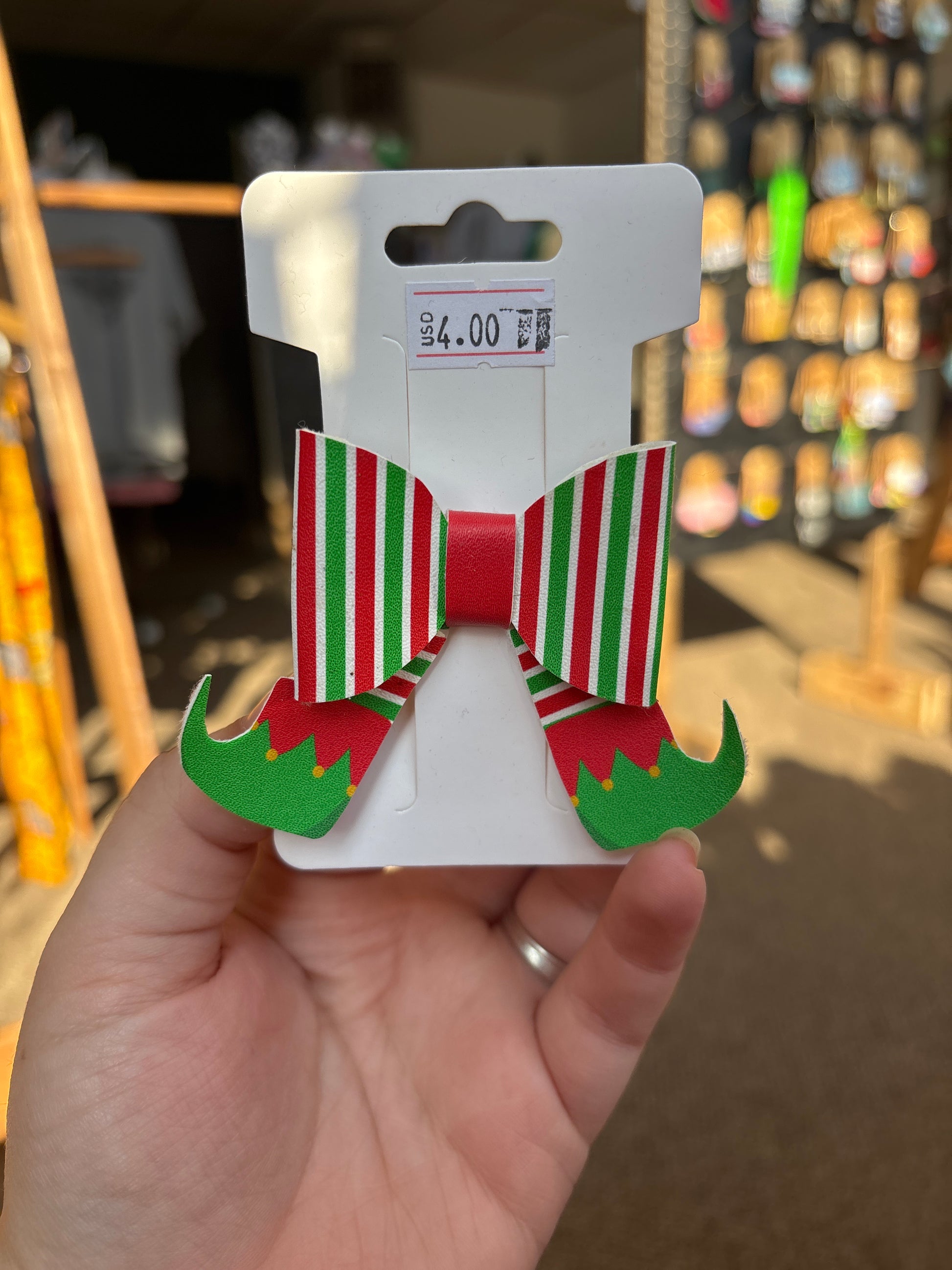 Red/green elf faux leather bow